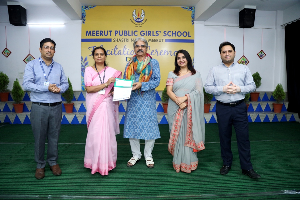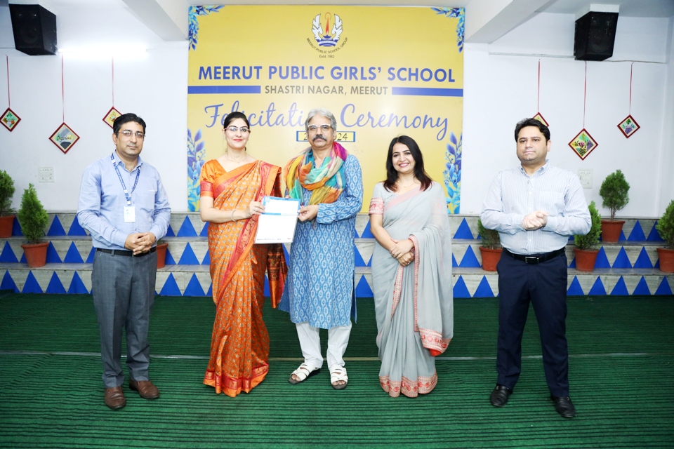 Pursuing excellence with perseverance is the path to perennial success creating enthralling moments. Meerut Public Girls’ School , Shastri Nagar organized The Felicitation Ceremony to felicitate its meritorious students and toppers of AISSE & AISSCE along with the faculty.The event began with the green welcome of the Chief Guest Director Academics, C.C.S University Mr Sanjeev Sharma and the Managing Director MPS Group Mr. Vikramjeet Singh Shastri followed by lighting the lamp.