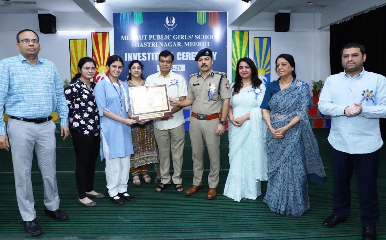 The ceremony was graced by distinguished guests — Mr. Vipin Tada, Senior Superintendent of Police, Meerut, as the Chief Guest, and Mr. Vinod Bhartiya, District Coordinator, R.S.S., as the Special Guest. Their esteemed presence added grace and significance to the occasion. Mrs. Sapna Ahuja, City Coordinator, CBSE and Principal, MPGS Shastri Nagar, welcomed the dignitaries and highlighted the purpose of the event.