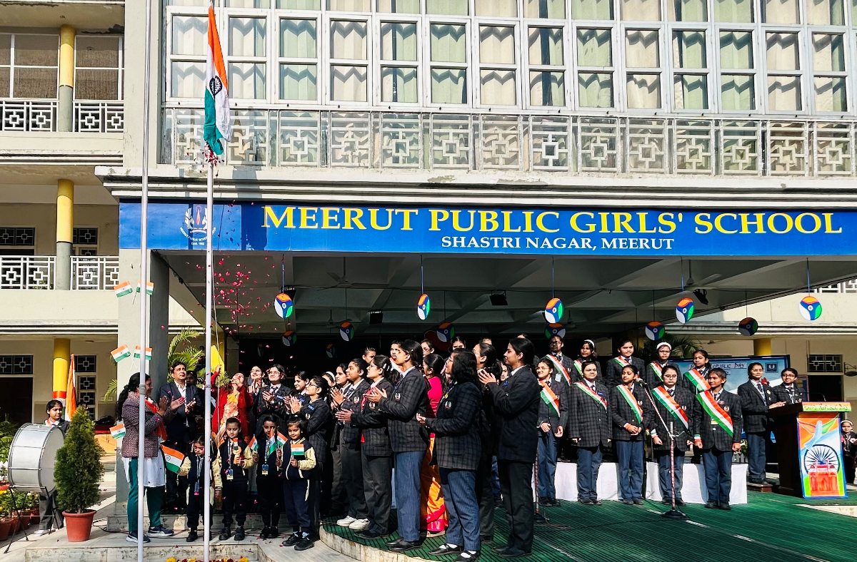 Meerut Public Girls’ School, Shastri Nagar celebrated the 77th Republic Day on 26 January 2026 with great enthusiasm and pride. The programme began with the unfurling of the National Flag, followed by the soulful rendition of the National Anthem and the National Song, creating an atmosphere of patriotism and unity.