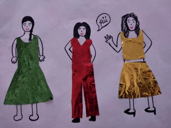 Students of the senior wing donned the hats of Apparel Designers  when they were alloted the task of forming garments.