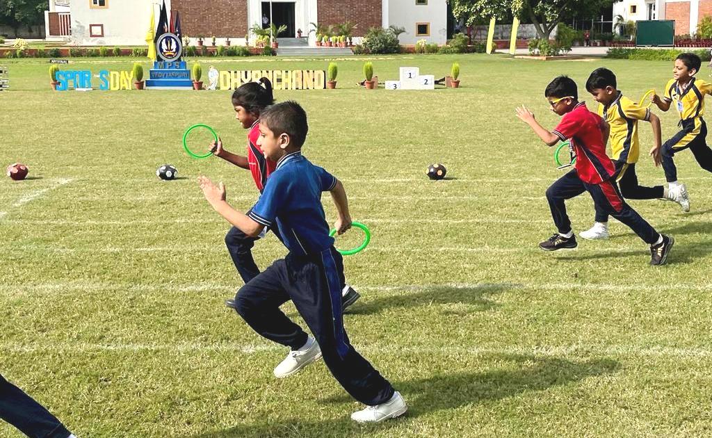 National Sports Day celebration at Meerut Public School, Ved Vyas Puri, was a spectacular event brimming with boundless energy and unwavering enthusiasm. Held in a vibrant atmosphere, the event served as a testament to the school dedication to nurture holistic development. Pre-primary kids displayed exceptional sportsmanship and teamwork through a range of thrilling sports events on 29th August, 2023.