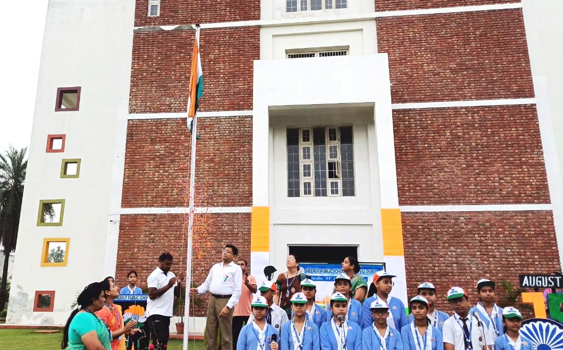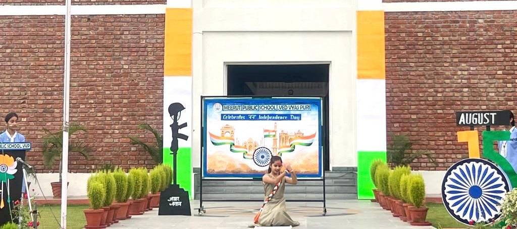 Meerut Public School, Ved Vyas Puri celebrated the 77th Independence Day with a remarkable display of zeal, pride, and patriotism. The campus was adorned with the tricolor, reflecting the spirit of the nation’s freedom struggle. The celebrations began with the hoisting of the national flag, accompanied by the stirring tunes of the national anthem. The event witnessed a remarkable Inter-House Hindi Poem Recitation competition, where students showcased their linguistic prowess. Emerging victorious, Vivekananda House displayed exceptional eloquence. Continuing the celebration, an Inter-House Solo Dance competition also took the stage, where Aryabhatta House claimed the top spot with their captivating performances. The rhythmic expressions of the participants added a touch of vibrancy to the occasion. The highlight of the day was a student, donning the attire of Prime Minister Modi, who delivered a stirring motivational speech that resonated with all present. His words ignited the flames of ambition and motivated everyone towards this year’s theme “NATION FIRST, ALWAYS FIRST”.