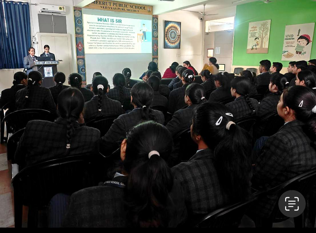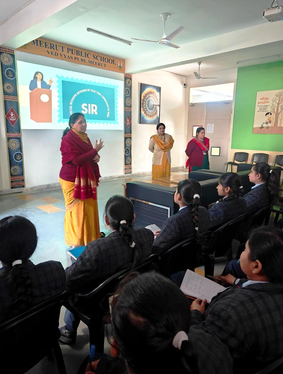For the Senior Stage (Classes IX & XI), the theme “Voting Awareness and Democratic Participation” was explored in the context of the Special Intensive Revision (SIR) by the Election Commission of India. Through research-based presentations, students developed a deeper understanding of democratic values, electoral processes, and civic responsibilities.
