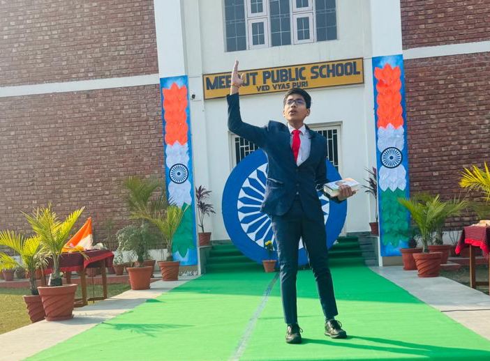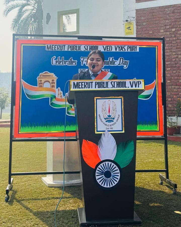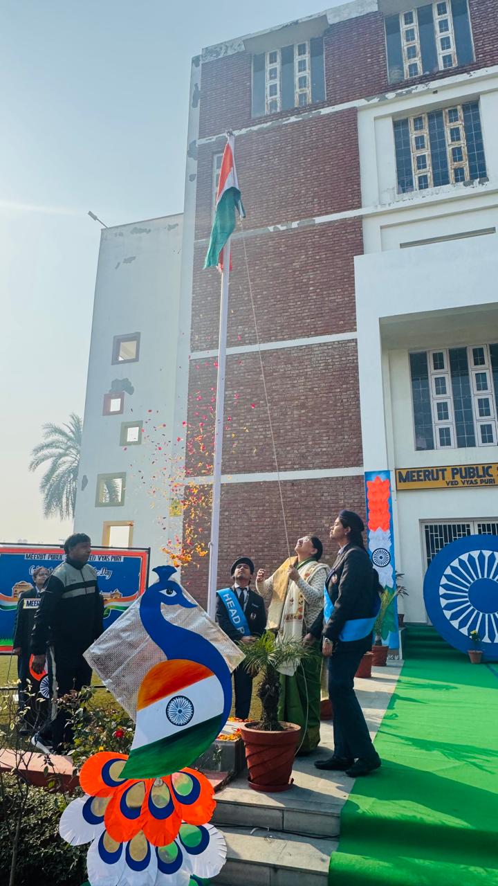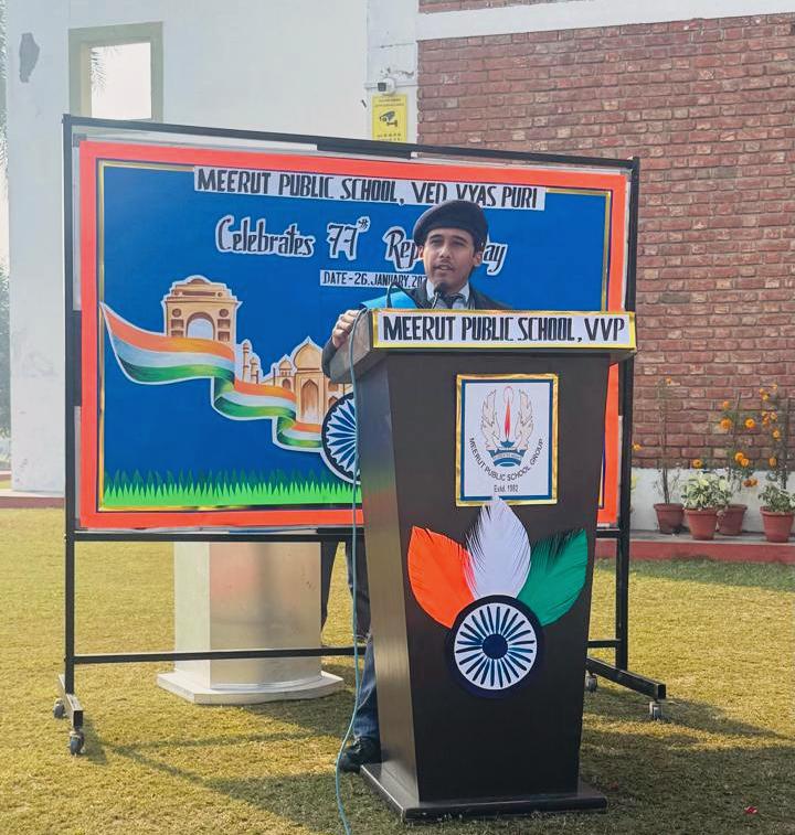 Meerut Public School, Ved Vyas Puri celebrated the 77th Republic Day with a deep sense of pride and solemnity. The programme commenced with the unfurling of the National Flag, creating an atmosphere of respect and national unity.